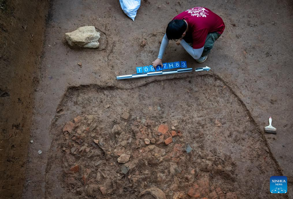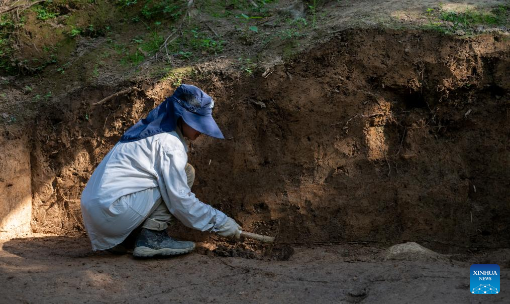 A participant from China works at an excavation site at the Panlongcheng National Archaeological Site Park in Wuhan, central China's Hubei Province, July 24, 2024. As part of Wuhan University's summer programs, the international summer school on archaeology is held at the Panlongcheng National Archaeological Site Park in Wuhan. This school offers opportunities to 9 students from home and abroad to participate in a five-week program, including lectures and field work. (Xinhua/Hu Jingwen)