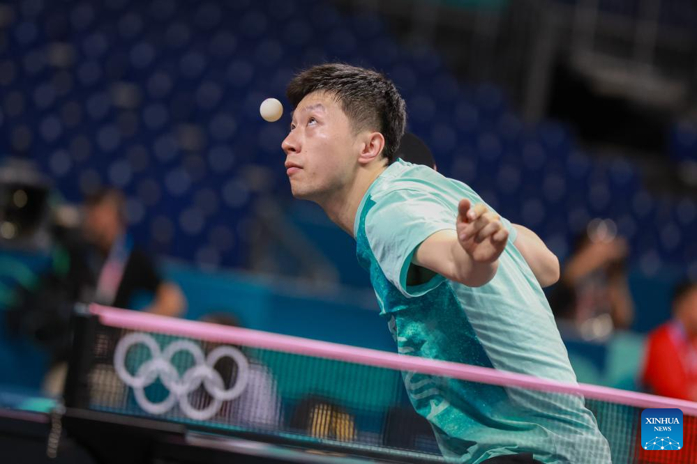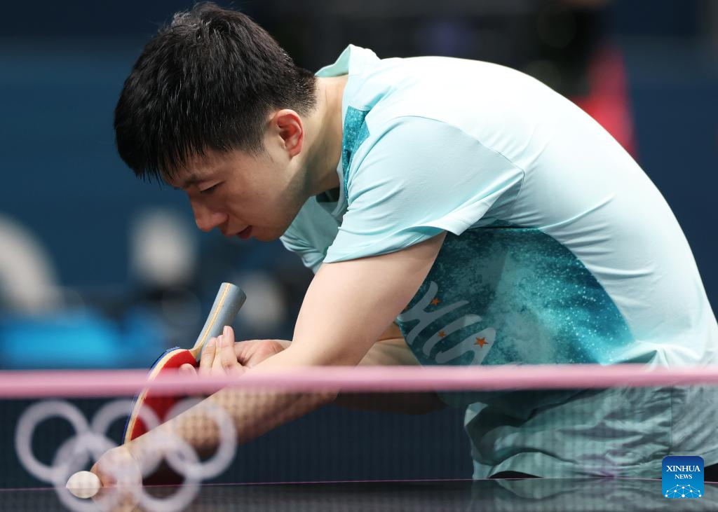 Ma Long of China takes part in a table tennis training session ahead of the Paris 2024 Olympic Games in Paris, France, on July 24, 2024. (Xinhua/Liu Xu)