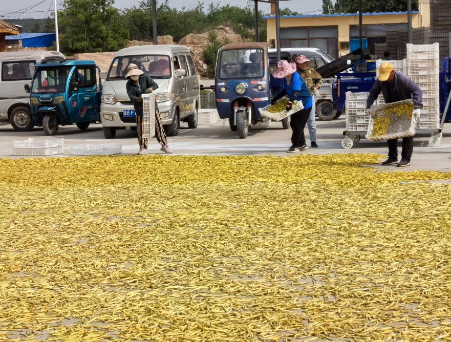 Daylilies are spread out on the ground for drying. (Photo courtesy of the media center of Yunzhou district, Datong city)