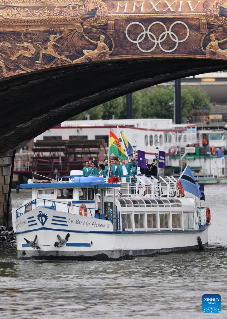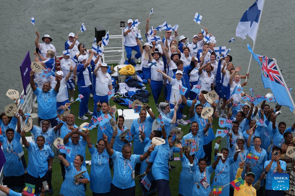 Members of the delegations of Fiji and Finland are seen during the opening ceremony of the Paris 2024 Olympic Games in Paris, France, July 26, 2024. (Xinhua/Wan Xiang)