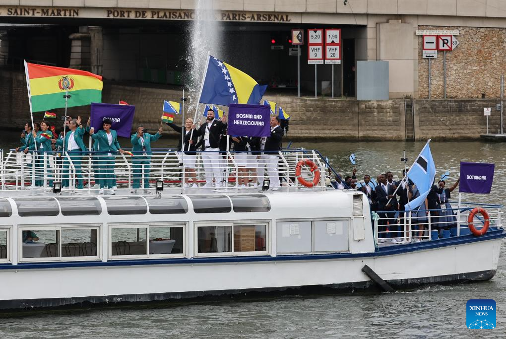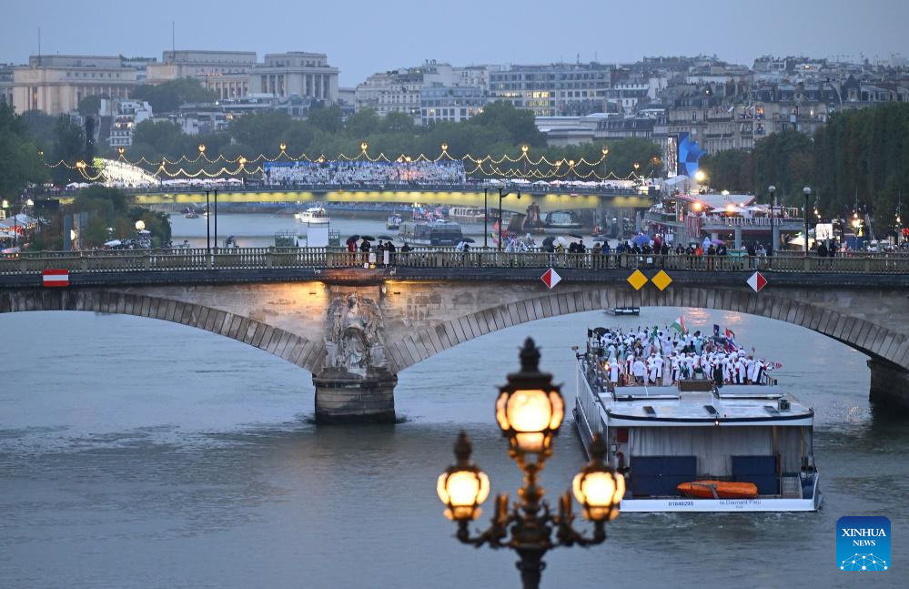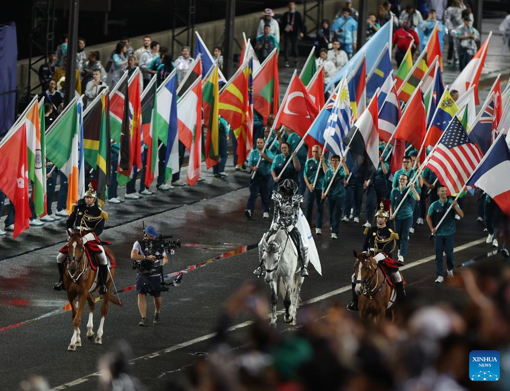 Members of the delegations are seen during the opening ceremony of the Paris 2024 Olympic Games in Paris, France, July 26, 2024. (Xinhua/Wan Xiang)