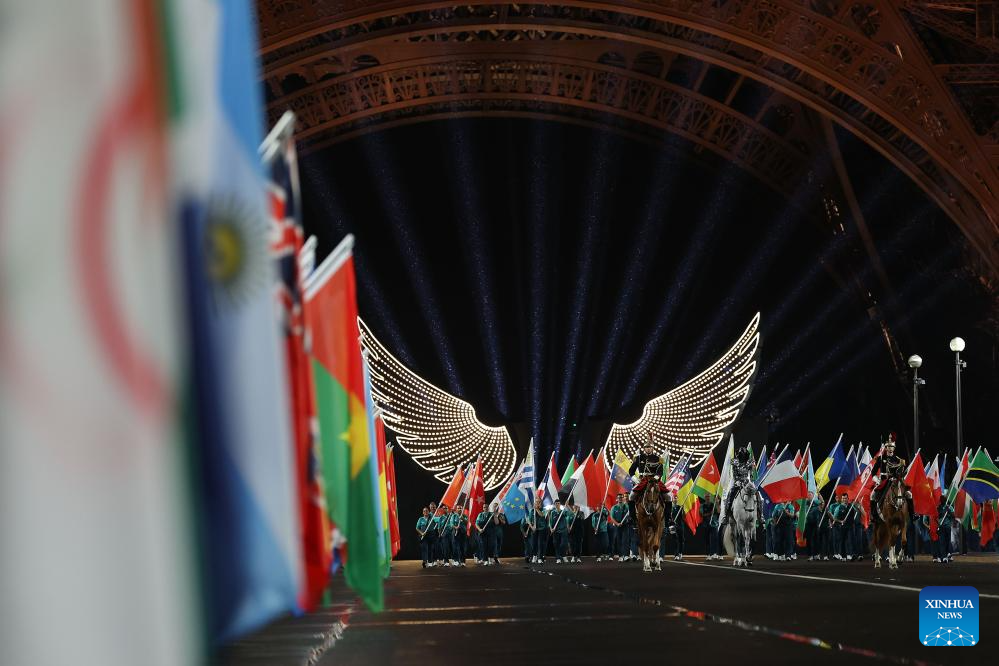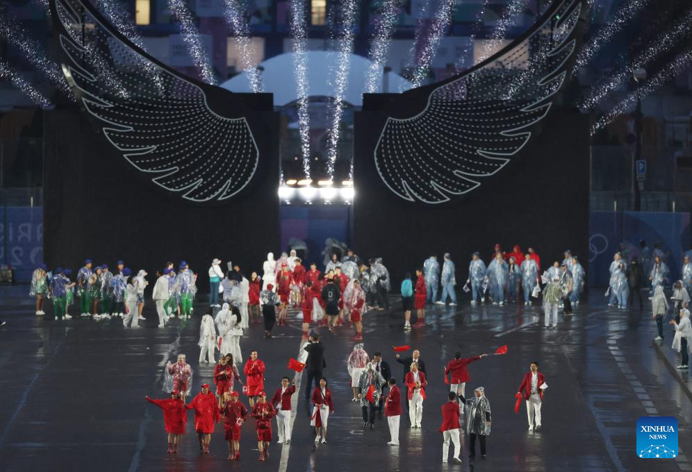 Members of the delegations are seen during the opening ceremony of the Paris 2024 Olympic Games in Paris, France, July 26, 2024. (Xinhua/Meng Yongmin)