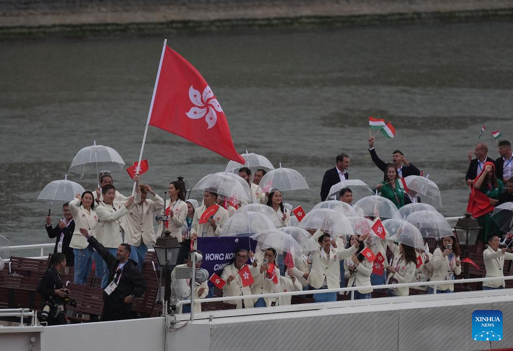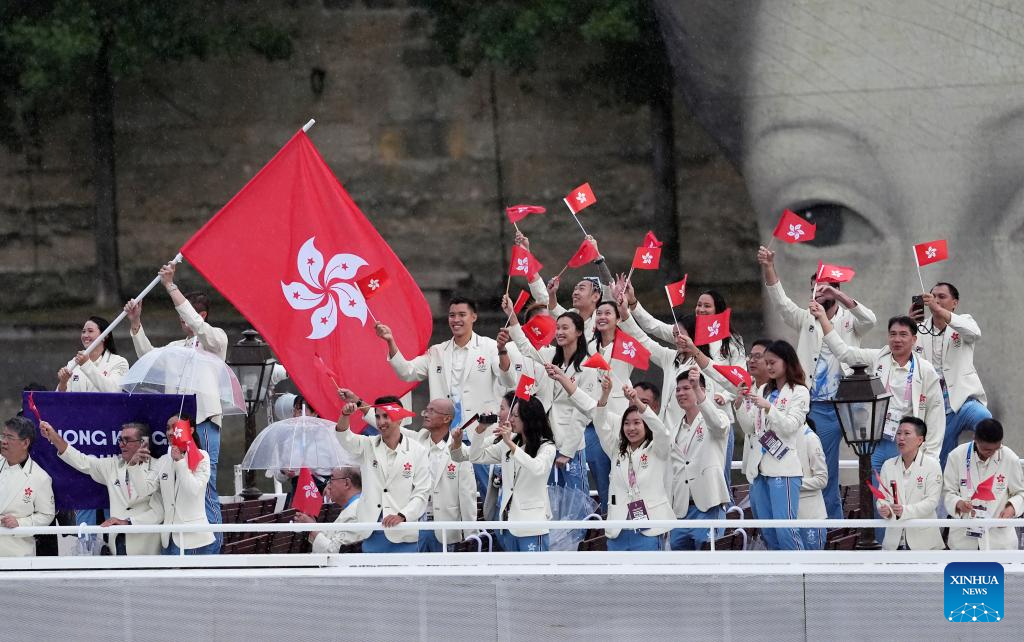 Members of the delegation of China's Hong Kong are seen during the opening ceremony of the Paris 2024 Olympic Games in Paris, France, July 26, 2024. (Xinhua/Meng Yongmin)