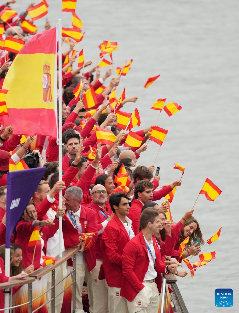 Members of the delegation of Spain are seen during the opening ceremony of the Paris 2024 Olympic Games in Paris, France, July 26, 2024. (Xinhua/Wan Xiang)
