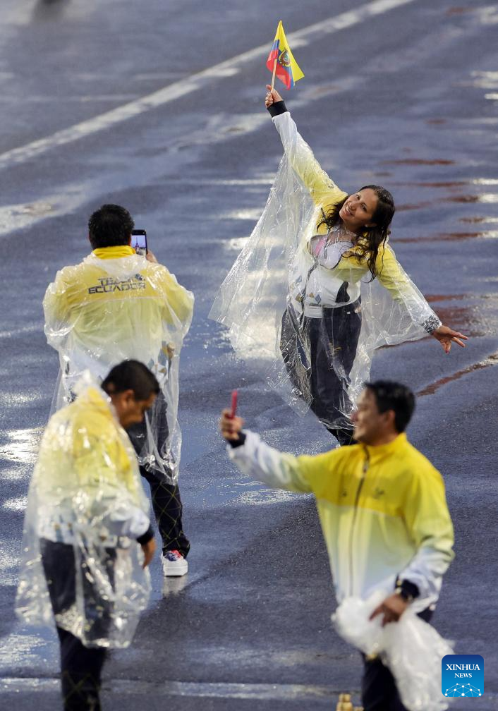 Members of the delegation of Ecuador are seen during the opening ceremony of the Paris 2024 Olympic Games in Paris, France, July 26, 2024. (Xinhua/Shen Bohan)