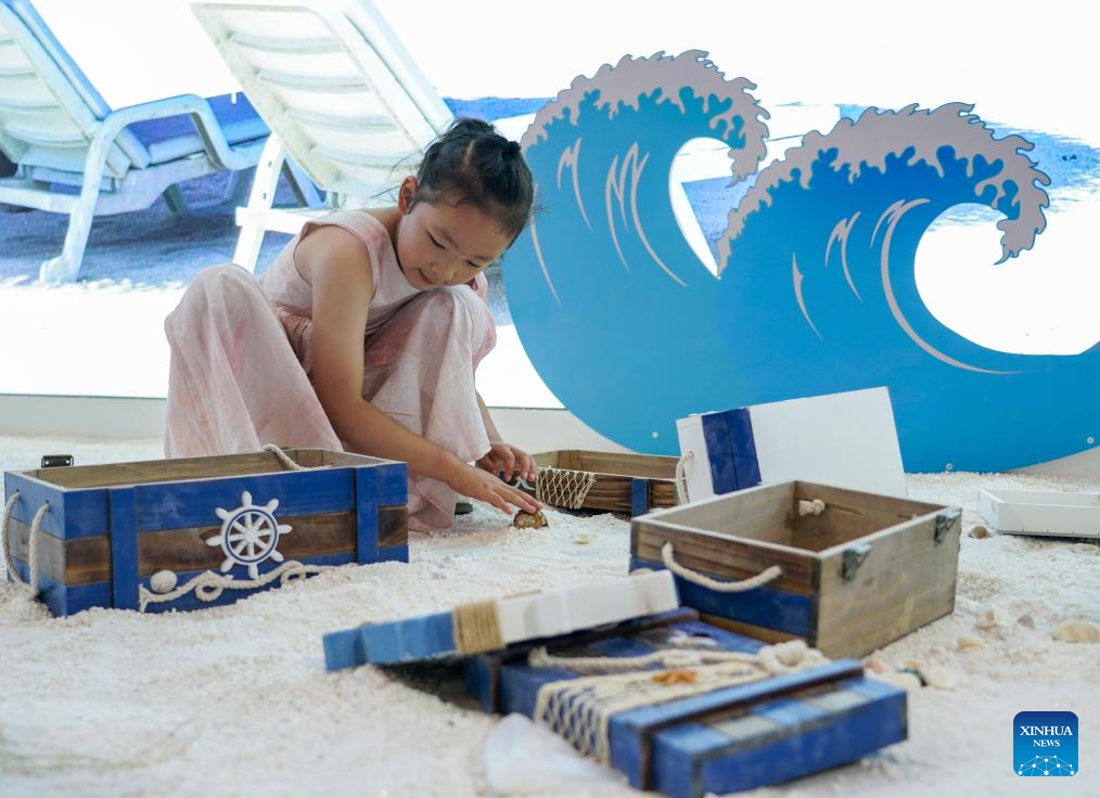 A child plays at the Maldives exhibition area of the South Asia Pavilion during the 8th China-South Asia Expo in Kunming, southwest China's Yunnan Province, July 26, 2024. The 8th China-South Asia Expo runs from July 23 to 28 in Kunming. The expo presents 15 pavilions, including two dedicated to South Asian countries, showcasing a total of approximately 800 booths. (Xinhua/Wang Jingyi)