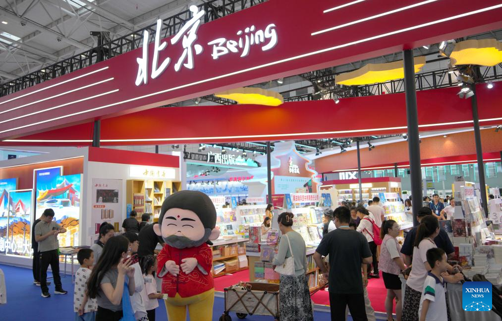 Readers visit the exhibition area of Beijing during the 32nd National Book Expo in Jinan, capital of east China's Shandong Province, July 26, 2024. Over 700,000 publications of various types have been put on display, both online and on site, at the 32nd National Book Expo in Jinan, capital of east China's Shandong Province.