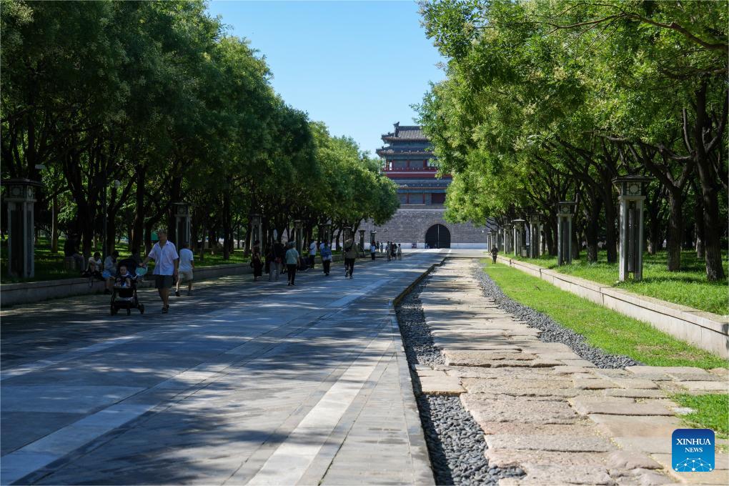 A section of ancient pavement (R) is pictured at the Yongdingmen Park in Beijing, capital of China, on July 18, 2024. (Xinhua/Ju Huanzong)