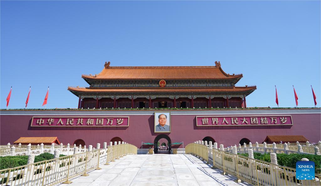 The Tian'anmen Rostrum and the Golden Water River Bridge are pictured in Beijing, capital of China, on July 17, 2024. (Xinhua/Chen Zhonghao)