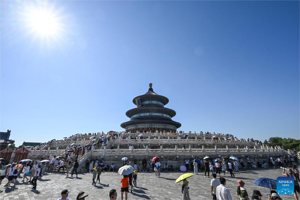 The Hall of Prayer for Good Harvests, or Qiniandian, is pictured at the Tiantan (Temple of Heaven) Park in Beijing, capital of China, July 17, 2024. (Xinhua/Chen Yehua)
