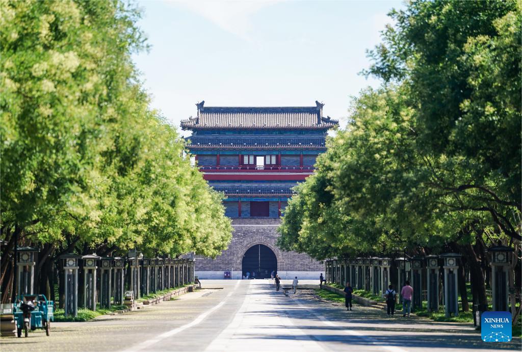 Visitors are pictured in front of the Drum Tower in Beijing, capital of China, July 16, 2024. (Xinhua/Chen Yehua)