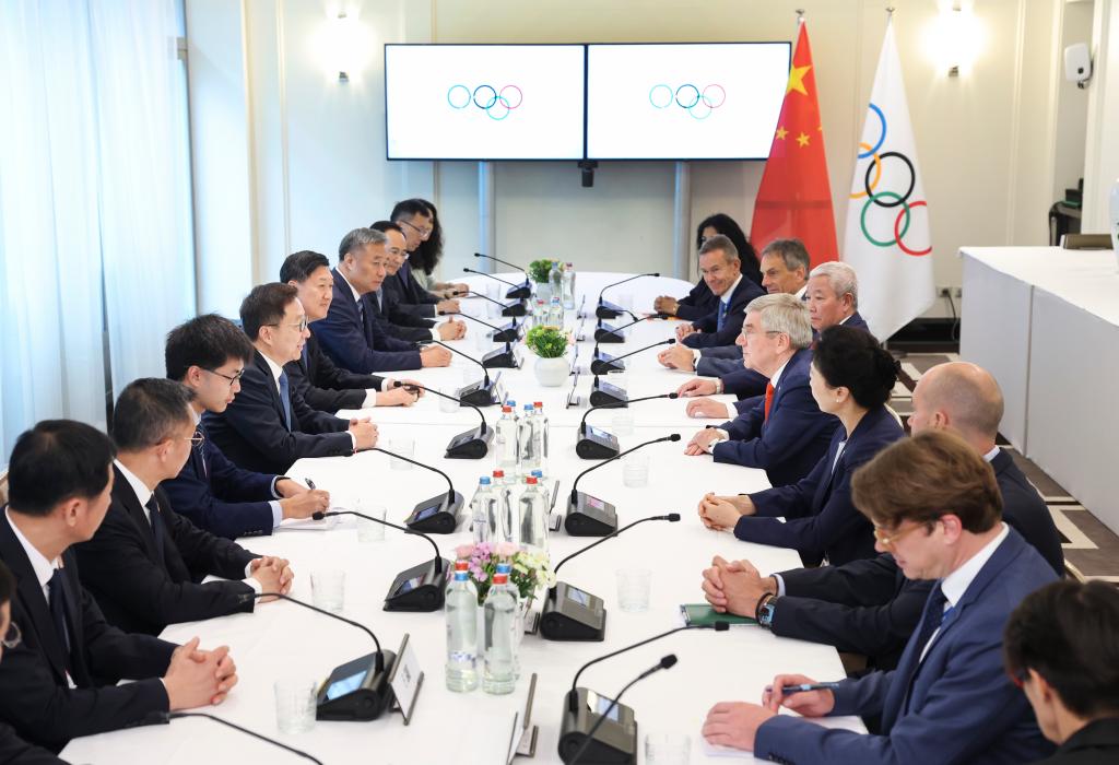 President Bach asked Han to convey his sincere regards to Xi, and warmly welcomed Han's participation in the opening ceremony of the Paris Olympics as Xi's special representative.