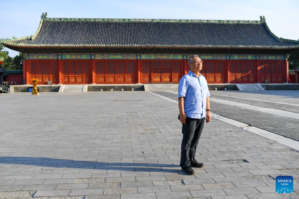 Lyu Zhou is pictured at the Altar of the God of Agriculture in Beijing, capital of China, June 18, 2024. (Xinhua/Chen Zhonghao)