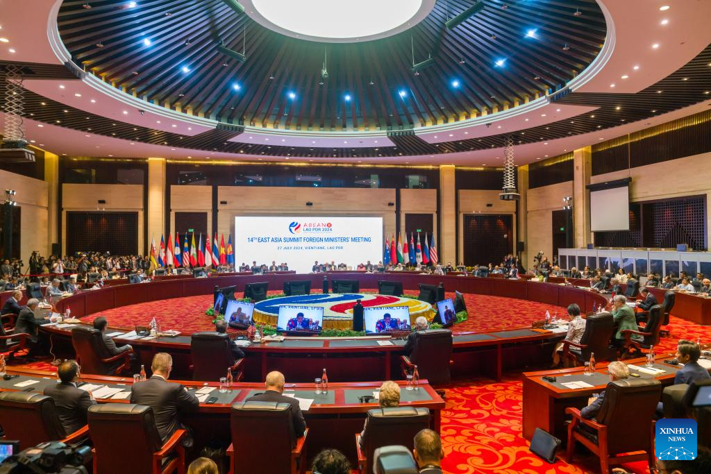 The 14th East Asia Summit (EAS) Foreign Ministers' Meeting is held in Vientiane, Laos, July 27, 2024. (Photo by Kaikeo Saiyasane/Xinhua)