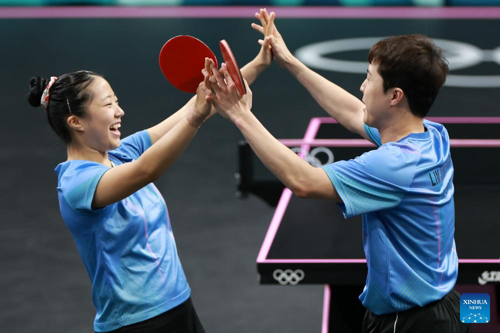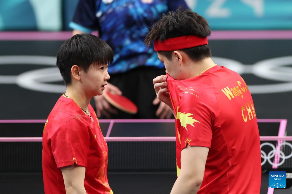 PARIS, July 28 (Xinhua) -- China's Wang Chuqin and Sun Yingsha, top seeds in the table tennis mixed doubles event at Paris 2024, endured a tough contest before securing a 4-2 comeback win over Lin Yun-Ju and Chen Szu-Yu of Chinese Taipei in the quarterfinals here on Sunday.