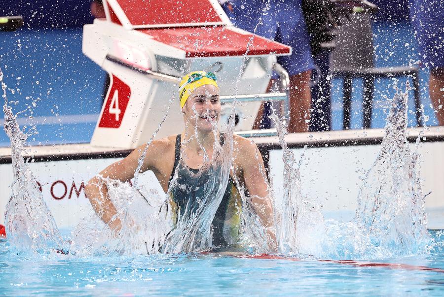 Kaylee McKeown of Australia reacts after the women's 100m backstroke final at the Paris Olympics on July 30, 2024. (Xinhua/Luo Yuan)