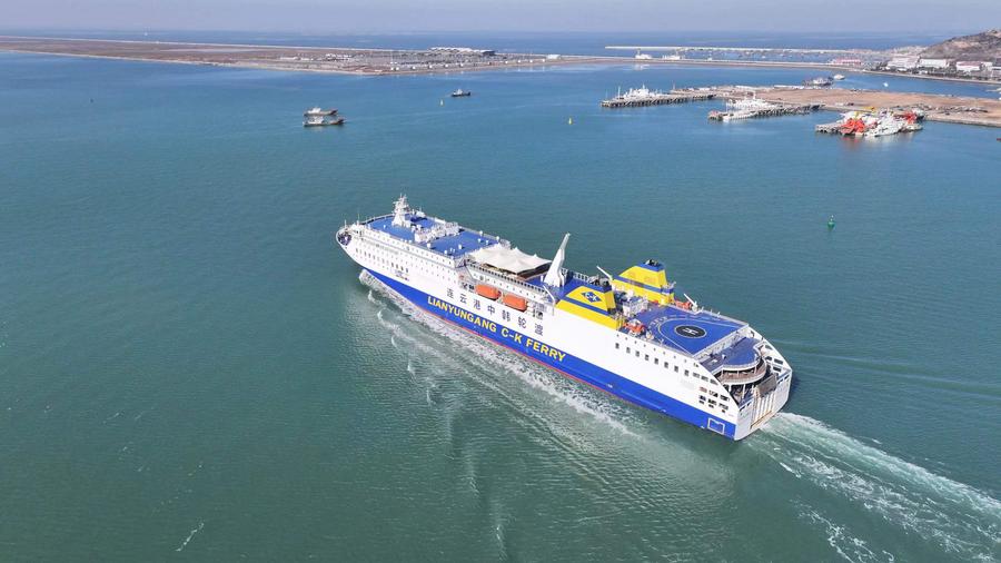 A cruise ferry between China and the Republic of Korea sails to the Lianyungang Port, east China's Jiangsu Province, July 21, 2024. (Xinhua)