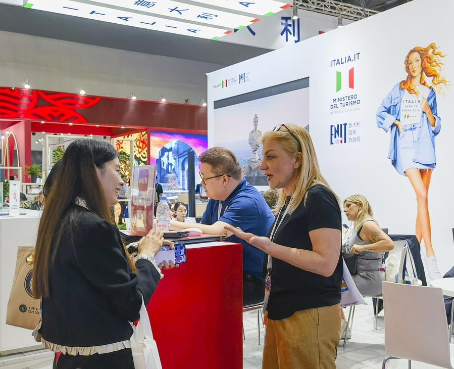People visit the booth of Italy at ITB China 2024 in Shanghai, east China, May 27, 2024. (Xinhua/Chen Aiping)