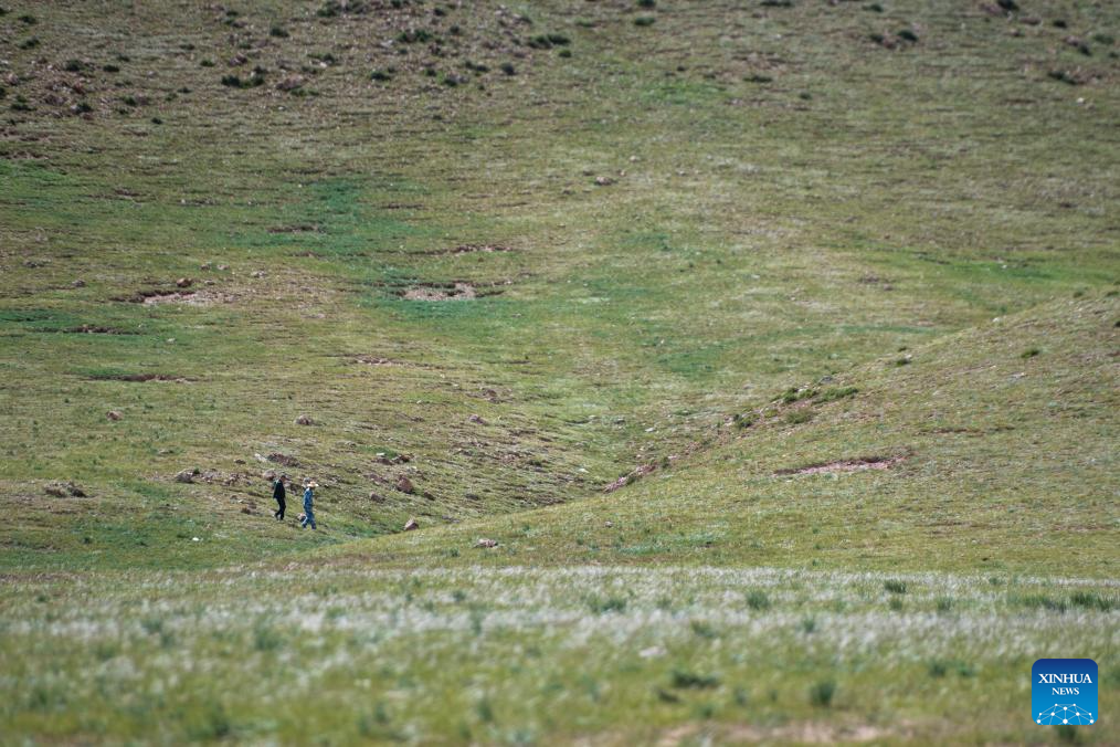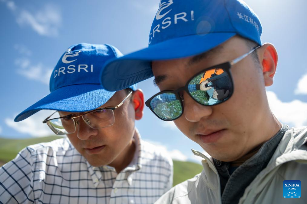 Researchers investigate vegetation ecology and soil erosion around the Damqu River in northwest China's Qinghai Province, July 22, 2024. (Xinhua/Wu Zhizun)