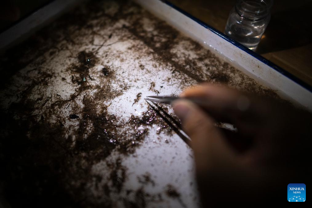 A researcher picks out benthic organisms in northwest China's Qinghai Province, July 24, 2024. (Xinhua/Wu Zhizun)