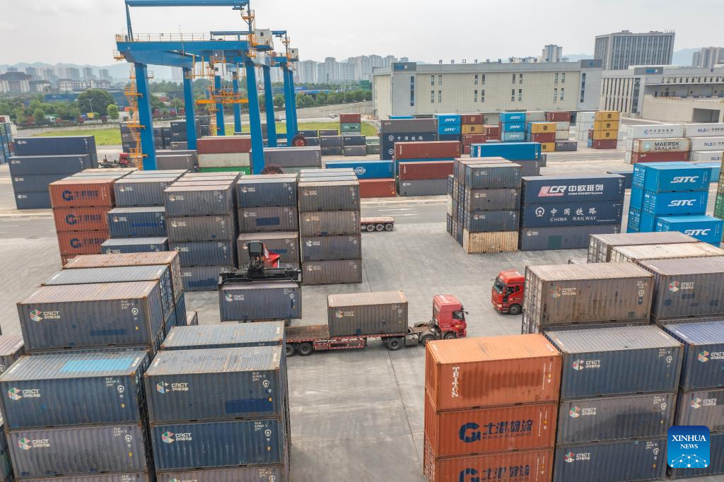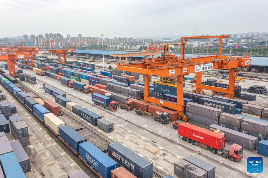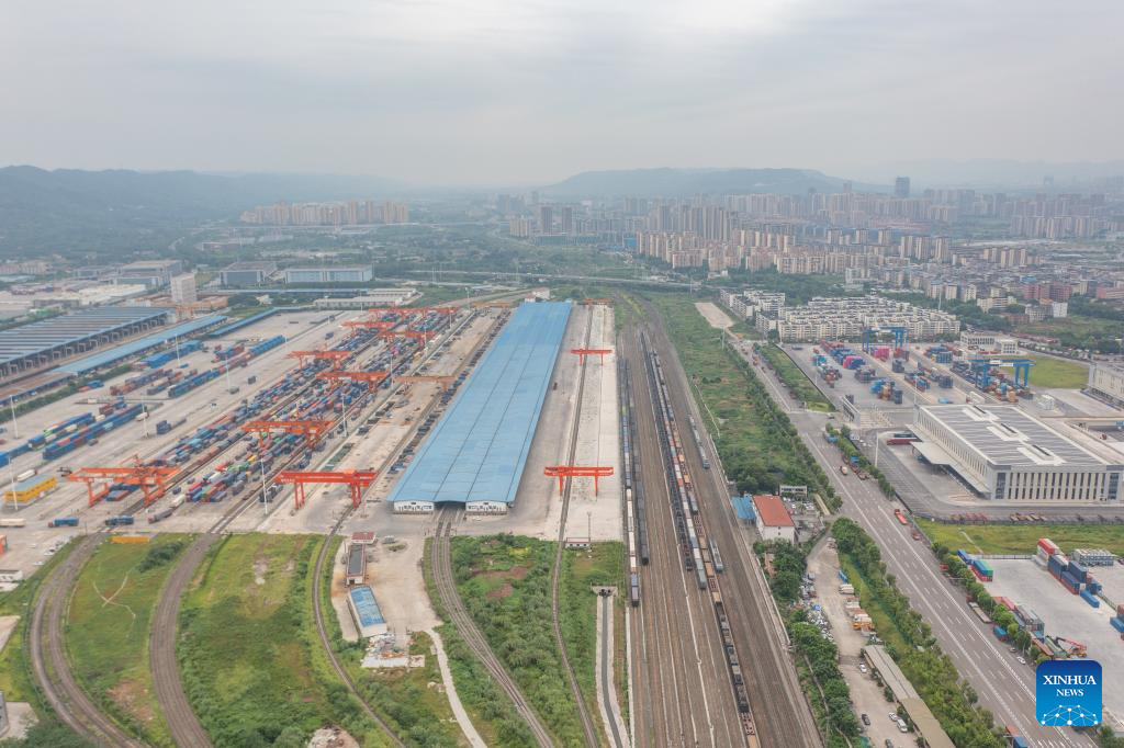 This photo taken on July 30, 2024 shows the Chongqing Railway Port at the Chongqing International Logistics Hub Park in Shapingba District of Chongqing, southwest China. (Xinhua/Lyu Shuai)