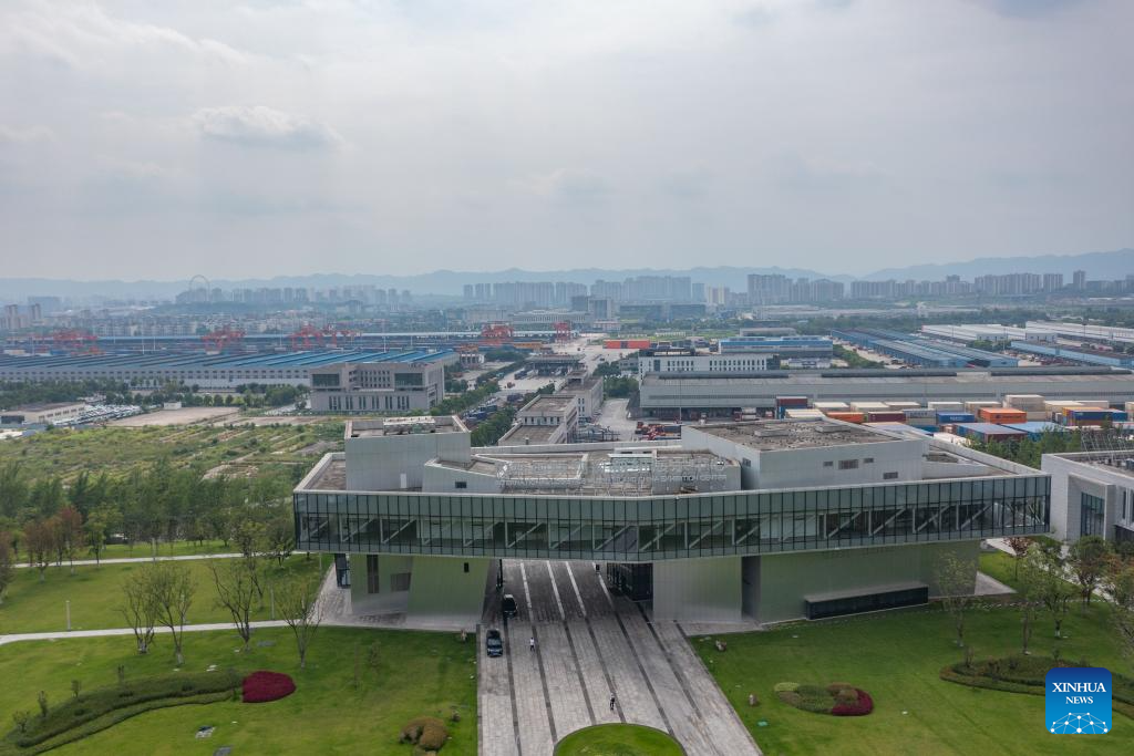 An aerial drone photo taken on July 30, 2024 shows the Chongqing International Logistics Hub Park in Shapingba District of Chongqing, southwest China. (Xinhua/Huang Wei)
