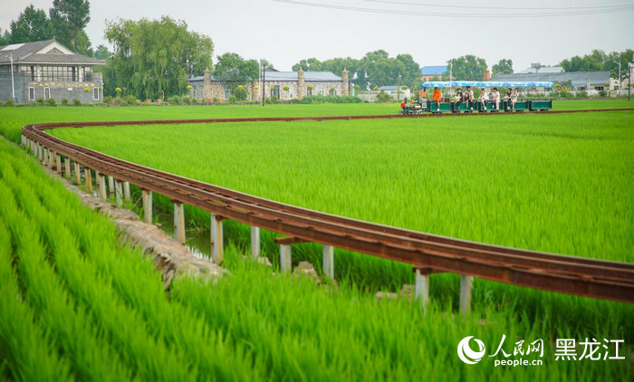 Tourists ride on a little train to enjoy the picturesque rural scenery. (People's Daily Online/Su Jinggang)