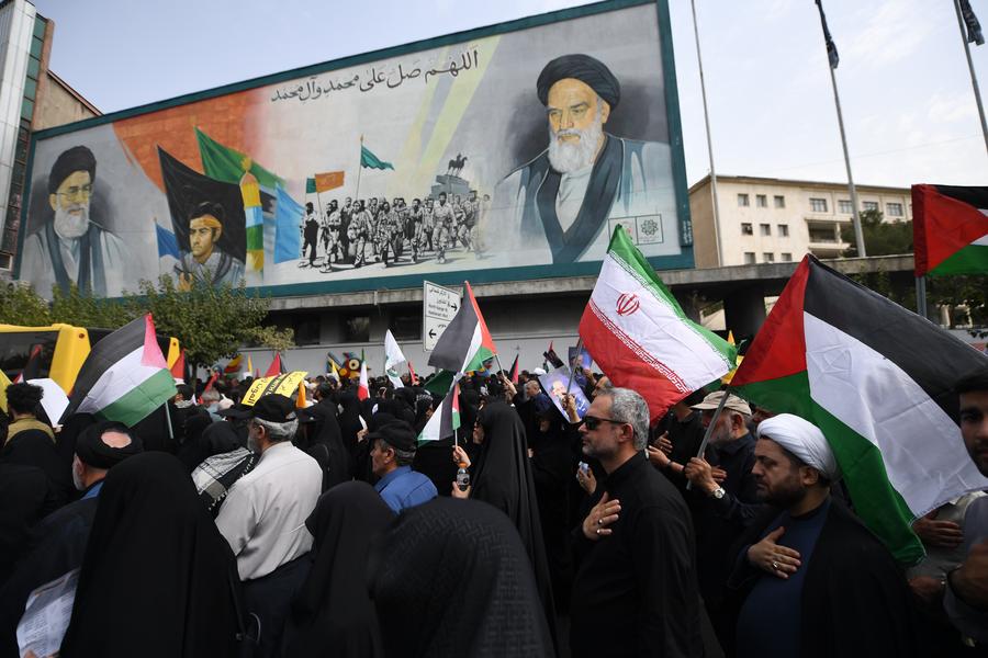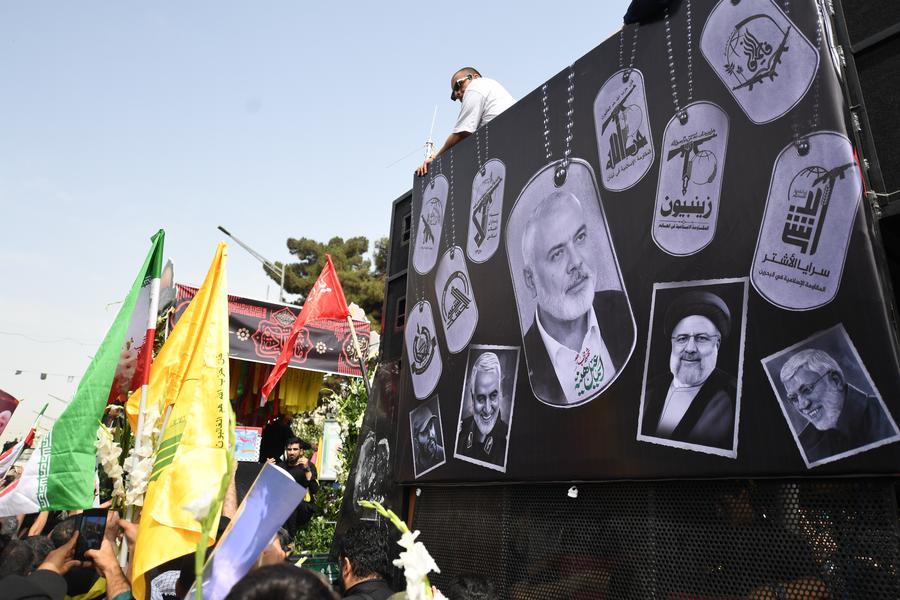 People attend the funeral procession of assassinated Hamas politburo chief Ismail Haniyeh in Tehran, Iran, on Aug. 1, 2024. (Xinhua/Shadati)