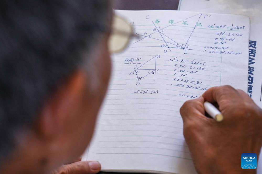 Ma Rusong prepares for classes at home in Shenyang Village of Taizhou City, east China's Jiangsu Province, July 30, 2024. (Xinhua/Wu Yingjing)