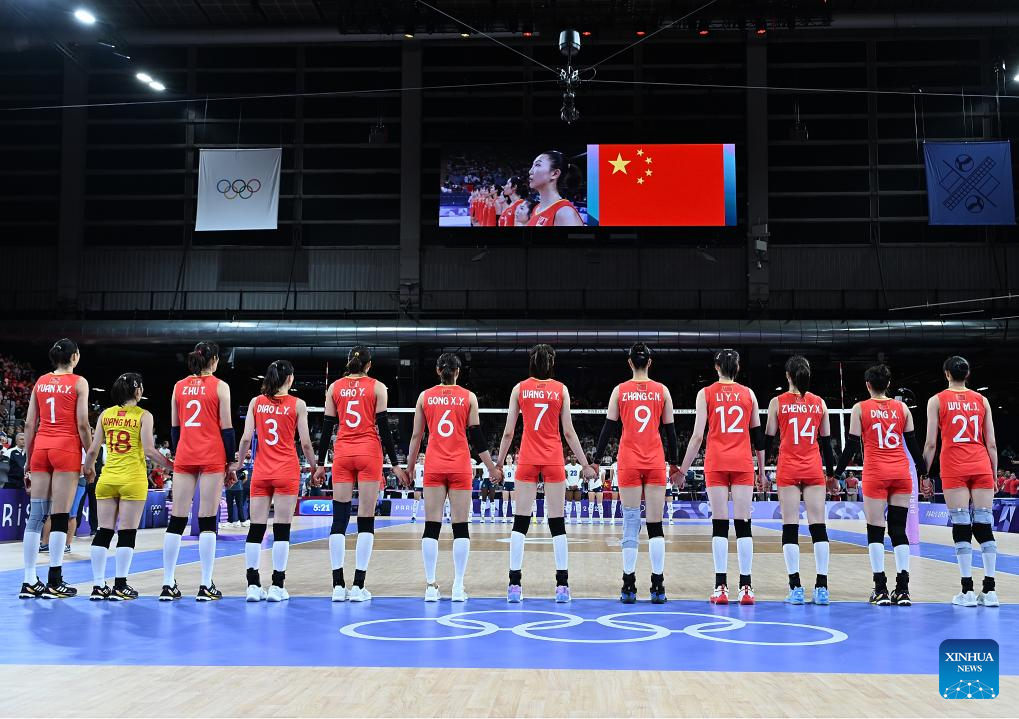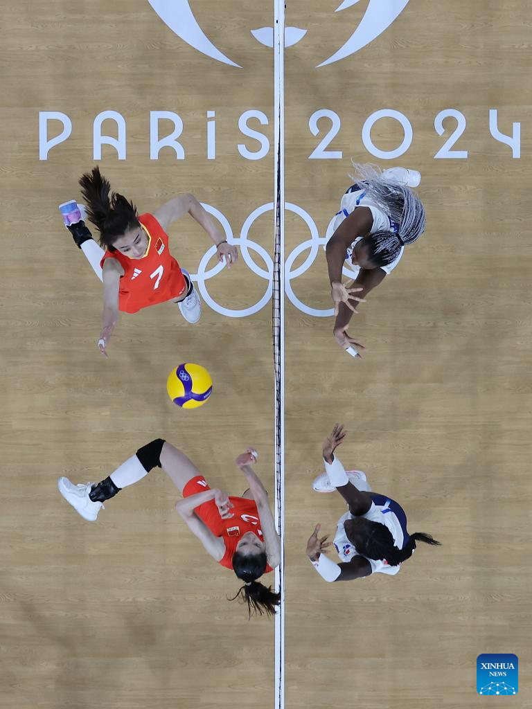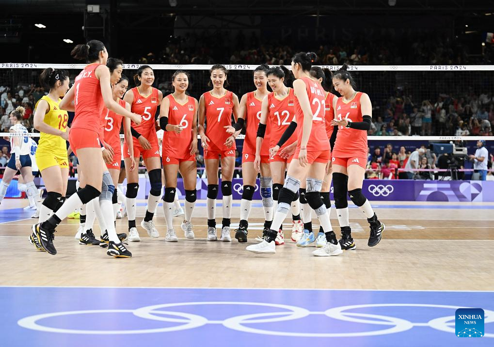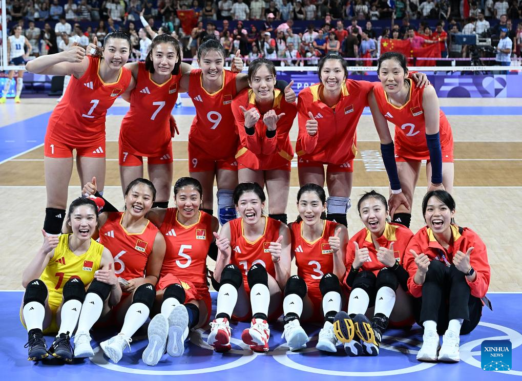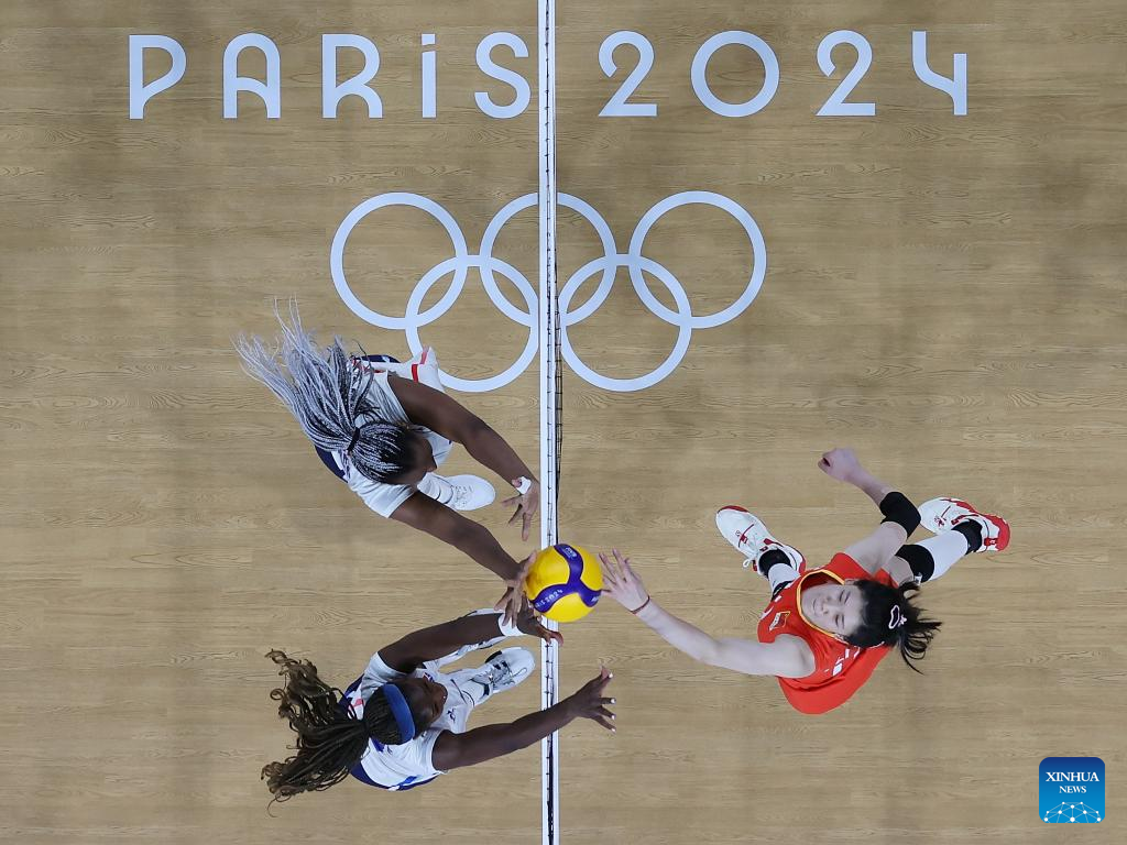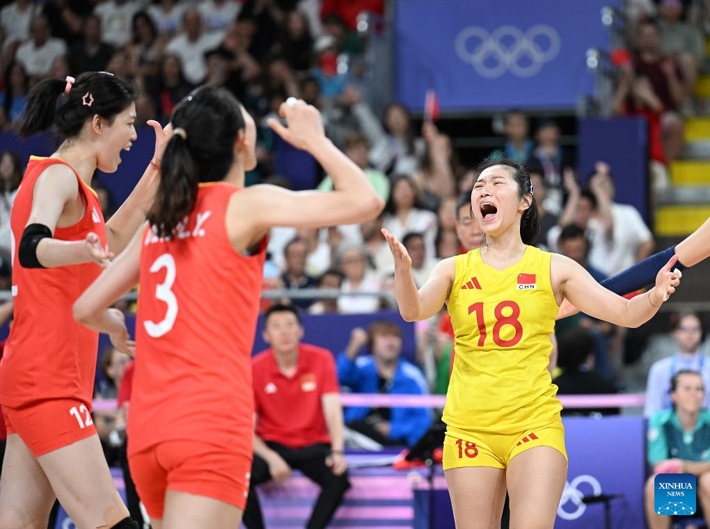 PARIS, Aug. 1 (Xinhua) -- The Chinese women's volleyball team clinched a quarterfinal spot of 2024 Paris Olympics with an easy 3-0 win over hosts France in their second Group A match here on Thursday.