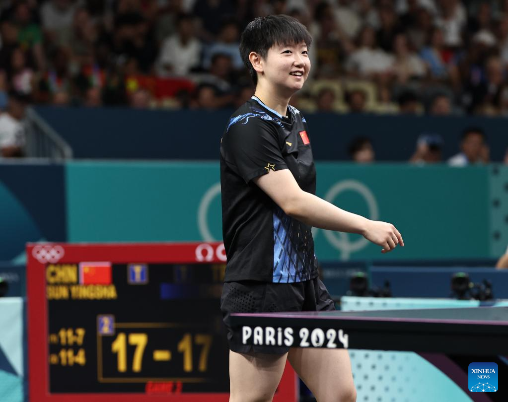 Sun, 23-year-old, who took gold in the mixed doubles at Paris 2024 with her partner Wang Chuqin, trounced 32-year-old Cheng I-Ching of Chinese Taipei 11-7, 11-4, 19-17, 11-5.
