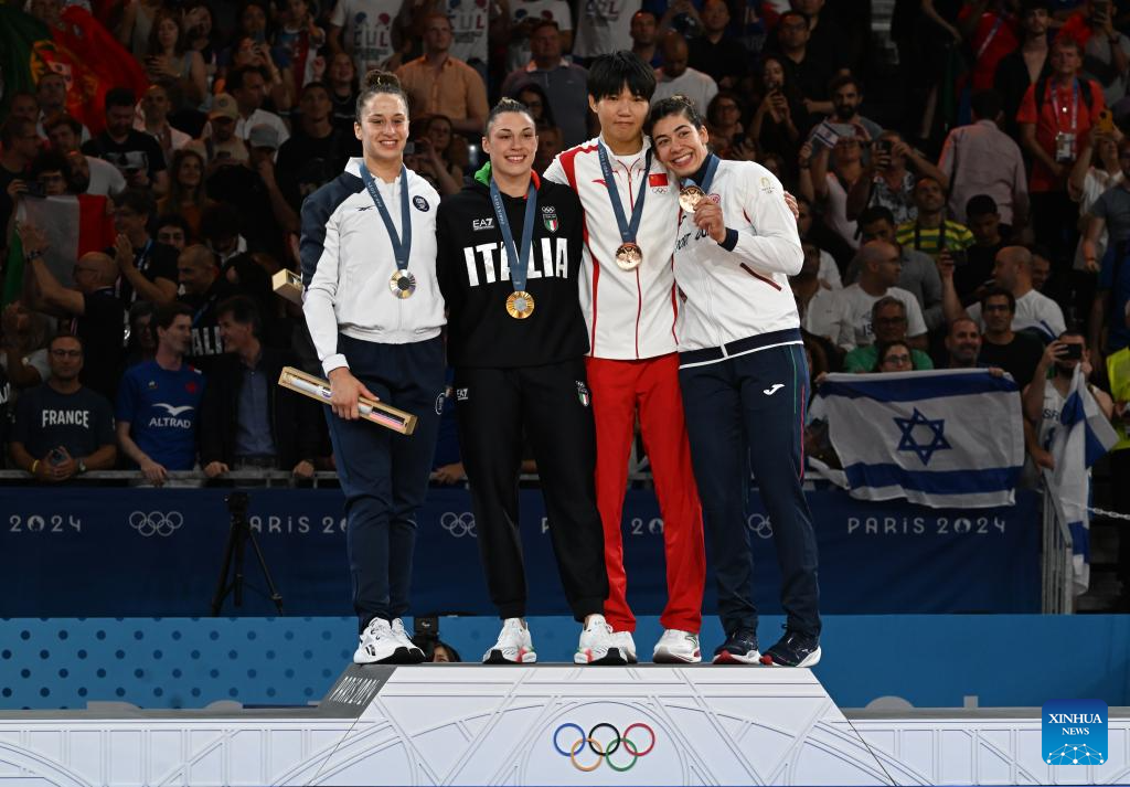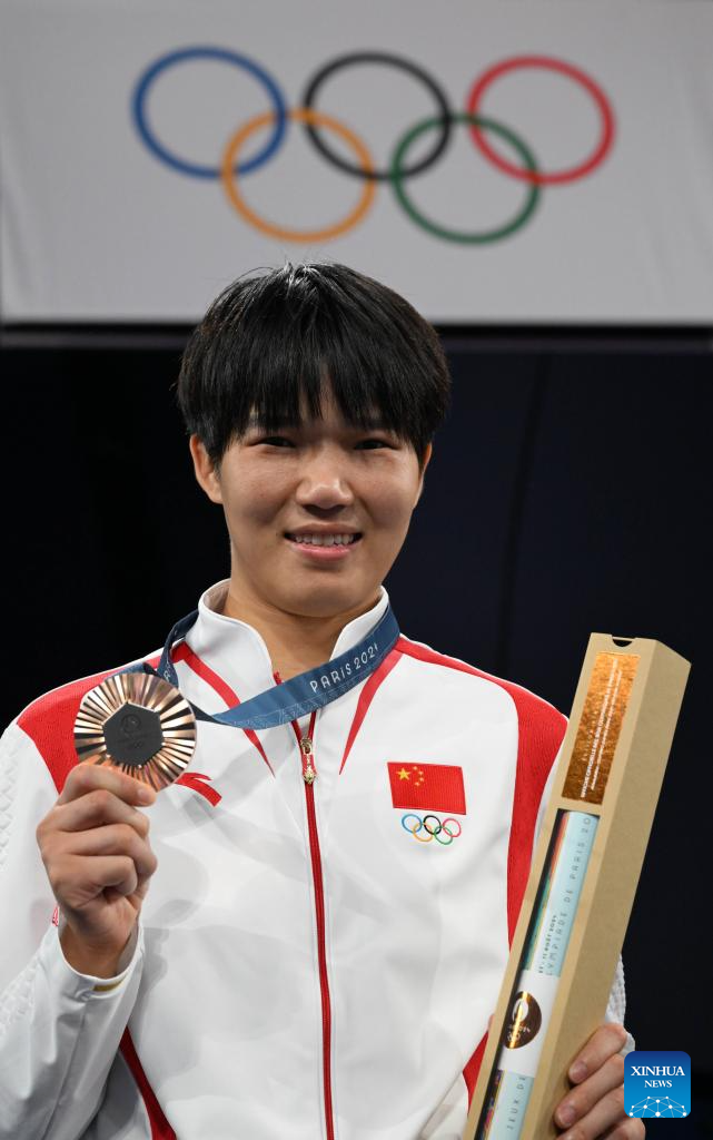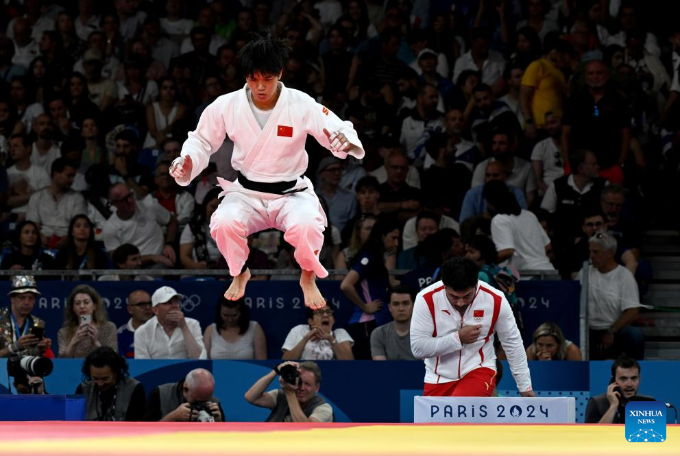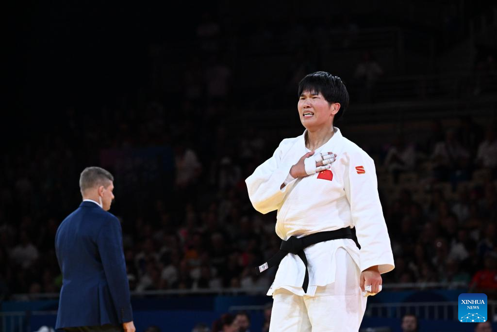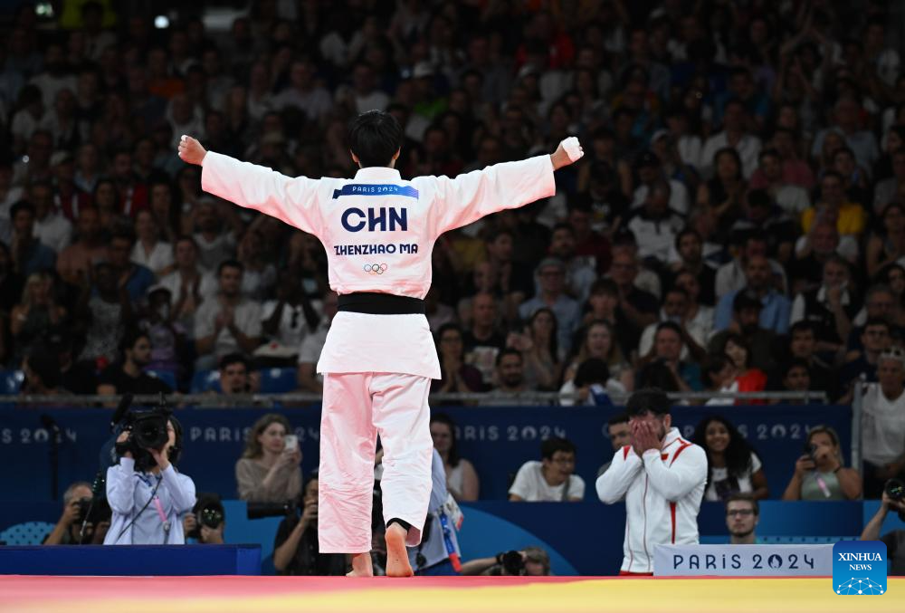 PARIS, Aug. 1 (Xinhua) -- China's two-time Olympic judoka Ma Zhenzhao took bronze in the women's 78kg category at the Paris Olympics on Thursday, earning the country's first Olympic judo medal since Rio 2016.
