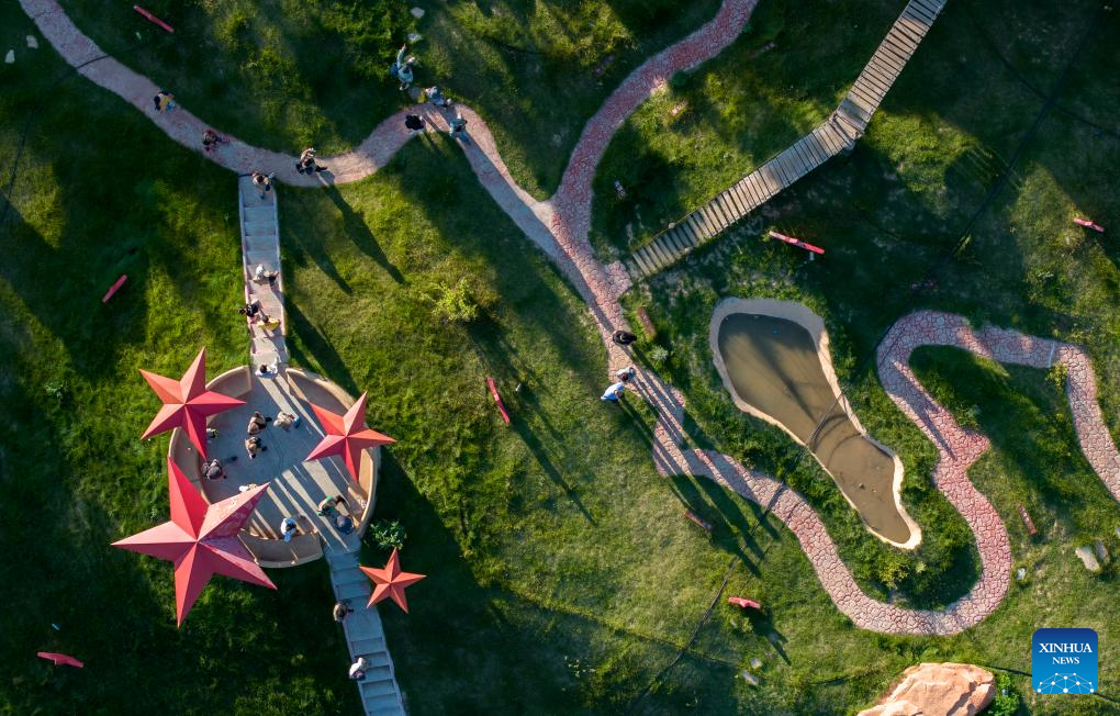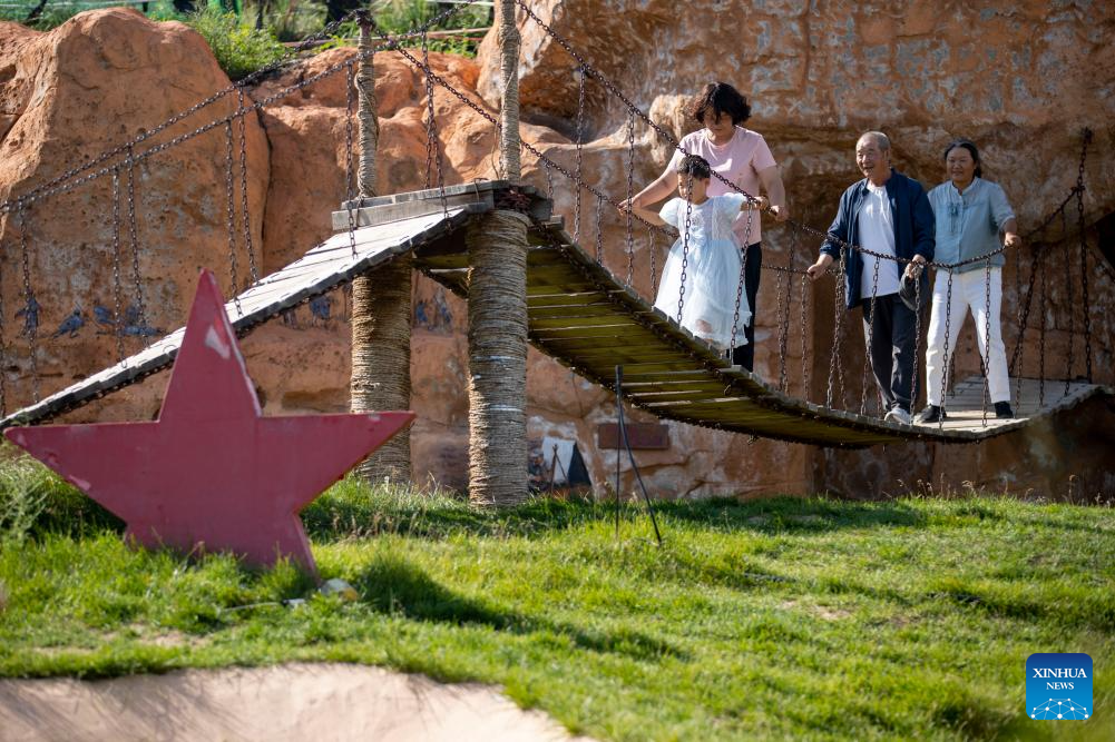 Tourists visit the Yangjiadian Village in Guyuan City, northwest China's Ningxia Hui Autonomous Region, Aug. 1, 2024. Relying on abundant red tourism resources of the Liupan Mountain, local authorities in Yangjiadian have actively developed homestay and rural tourism to advance rural revitalization. (Xinhua/Yang Zhisen)