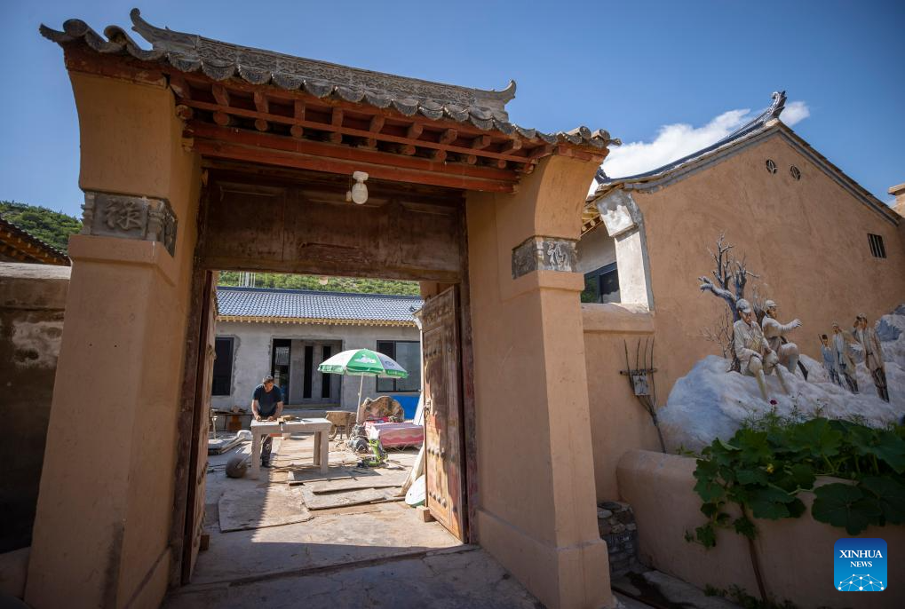A villager renovates his homestay at the Yangjiadian Village in Guyuan City, northwest China's Ningxia Hui Autonomous Region, Aug. 1, 2024. Relying on abundant red tourism resources of the Liupan Mountain, local authorities in Yangjiadian have actively developed homestay and rural tourism to advance rural revitalization. (Xinhua/Yang Zhisen)