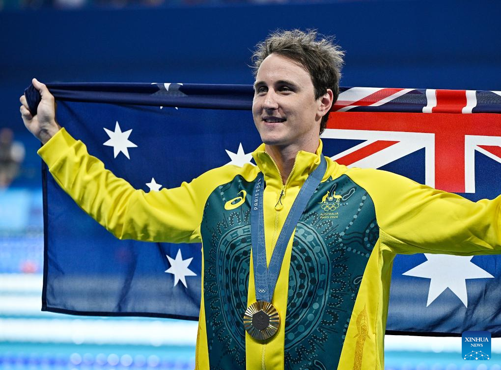 PARIS, Aug. 2 (Xinhua) -- Local hero Leon Marchand capped a stunning run at the Paris Olympics as Australia extended its gold medal haul on Friday's seventh night of swimming at the Paris Olympics.