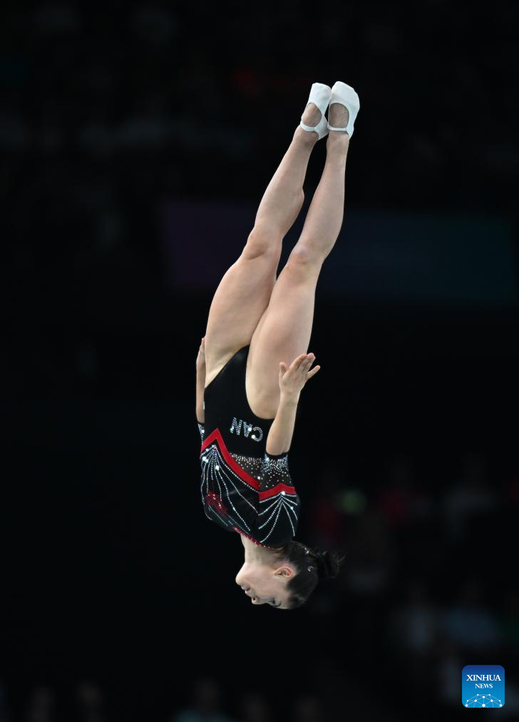Sophiane Methot of Canada competes during the women's final of trampoline gymnastics at the Paris 2024 Olympic Games in Paris, France, Aug. 2, 2024. (Xinhua/Cheng Min)