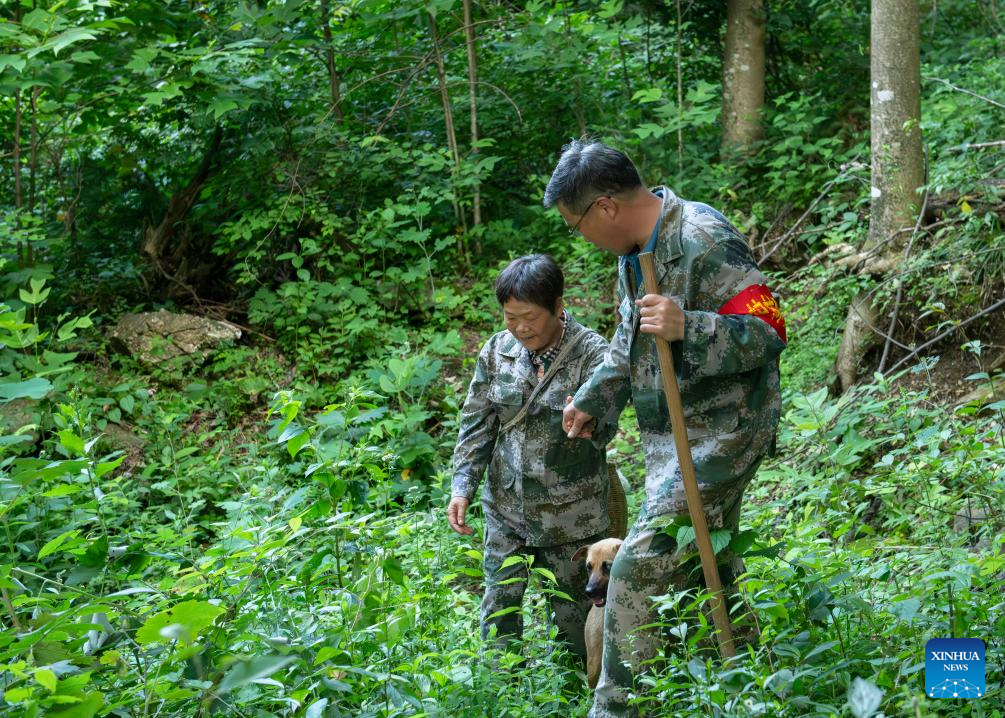 HEFEI, Aug. 3 (Xinhua) -- At the break of dawn, as the first light stirs the mountain birds and campers from their slumber, Hong Xiaochun and Huang Shuping, a forest ranger couple both aged 55, prepare to venture deep into the woods in east China's Anhui Province.