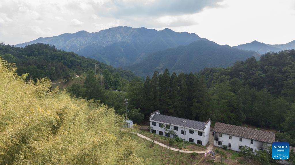 A drone photo taken on June 15, 2024 shows the Washang forest patrol station in Shexian County of Huangshan City, east China's Anhui Province. (Xinhua/Fu Tian)