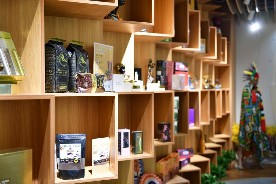 Commodities from Africa are displayed at the China-Africa Economic and Trade Headquarters Building in Changsha, central China's Hunan Province, July 22, 2024. (Xinhua/Chen Zhenhai)