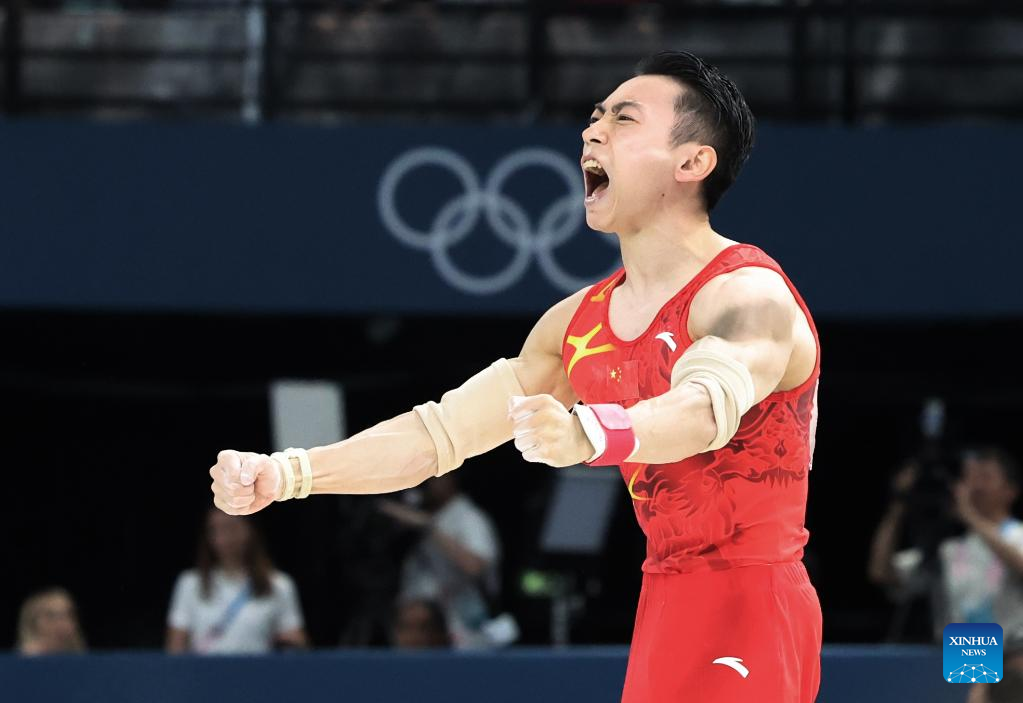 PARIS, Aug. 5 (Xinhua) -- Zou Jingyuan overcame a shoulder injury to capture the men's parallel bars title on Monday for China's second gymnastics gold medal at Paris Olympics.