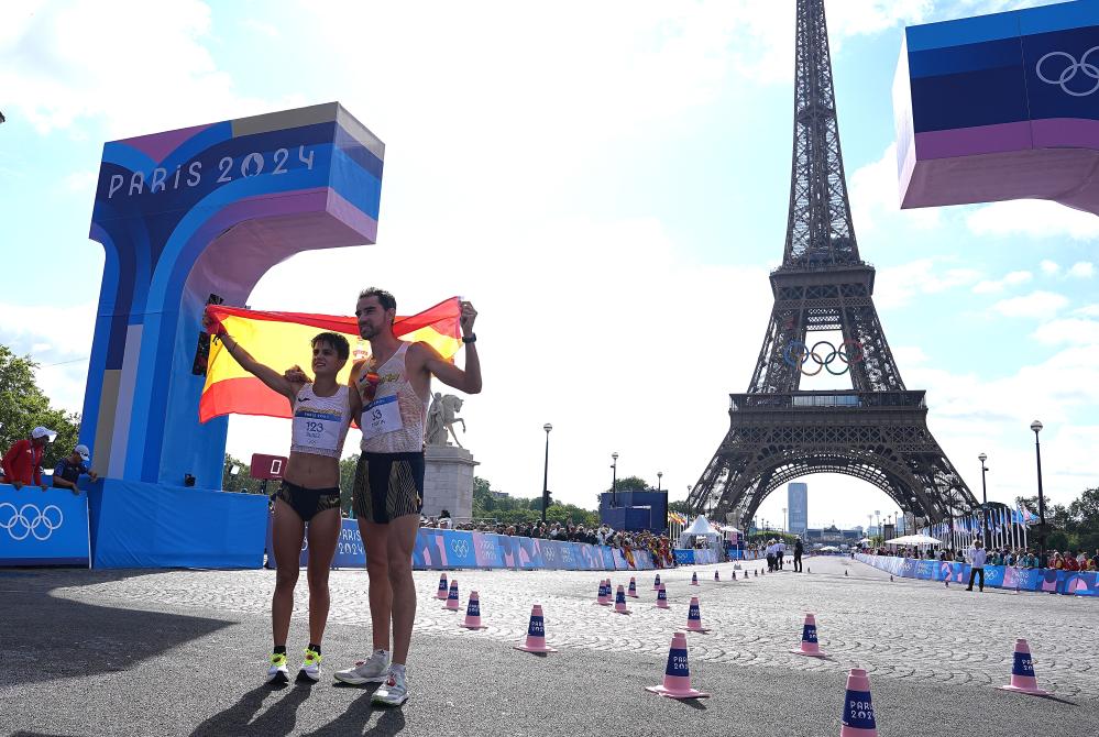 In the debut of the mixed marathon race walk relay, Alvaro Martin and Maria Perez claimed Spain's first athletics gold medal in Paris by winning the event in two hours, 50.31 minutes, ahead of Ecuador's Brian Pintado and Glenda Morejon, who took silver in 2:51:22.