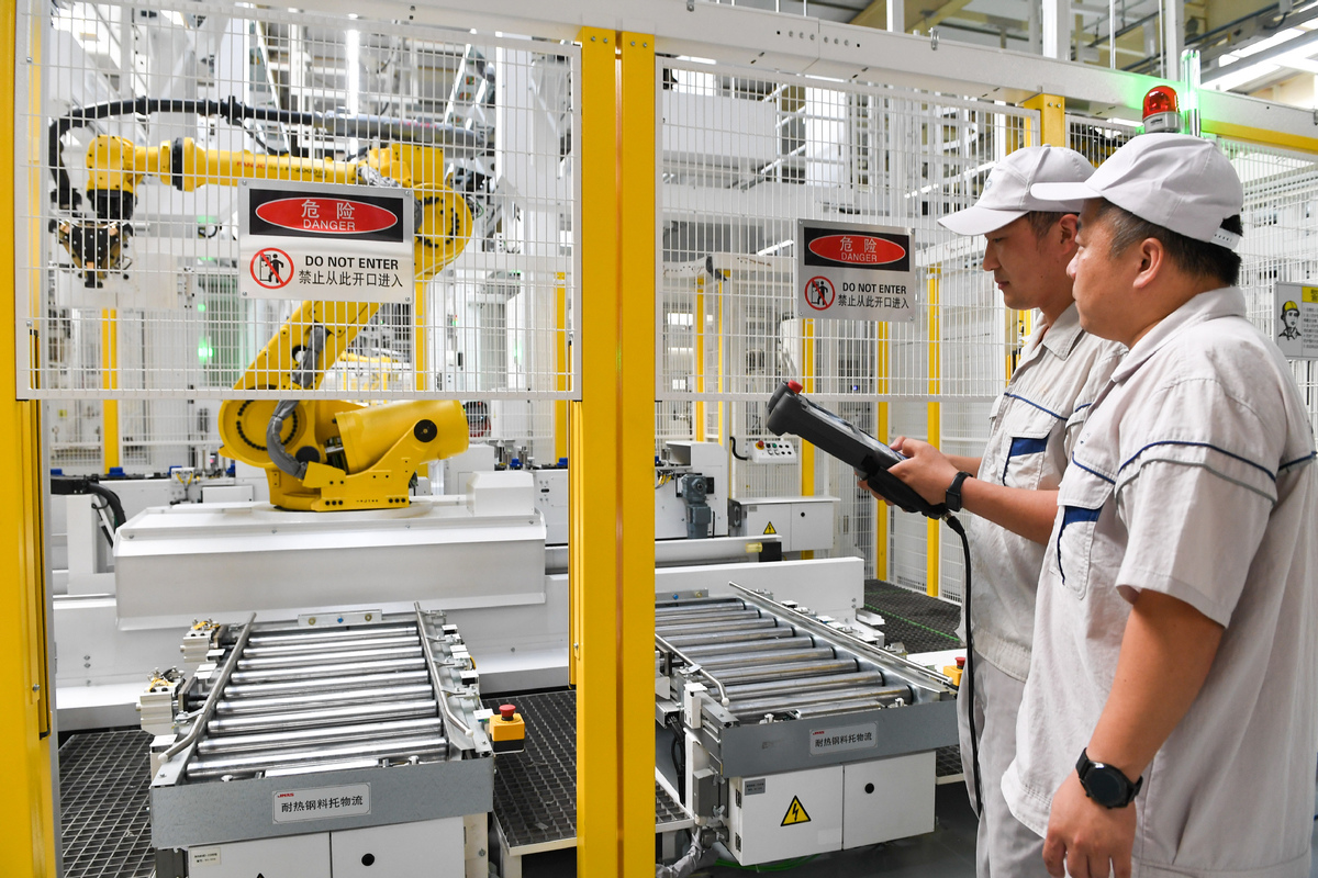Workers adjust the robots at the integrated AMT workshop of FAW Jiefang Automotive Co, a subsidiary of China FAW Group, in Changchun, Jilin province, on Aug 5, 2024. [Photo/Xinhua]