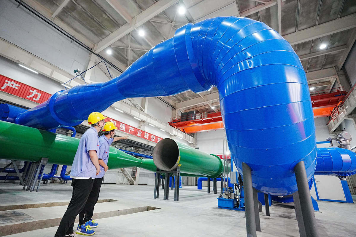 Staff members conduct inspections at the multistage air turbine test platform of the National Engineering Research Center of Power Generation Equipment, a national engineering research center of Harbin Electric Group, in Harbin, Heilongjiang province, on July 23, 2024. [Photo/Xinhua]
