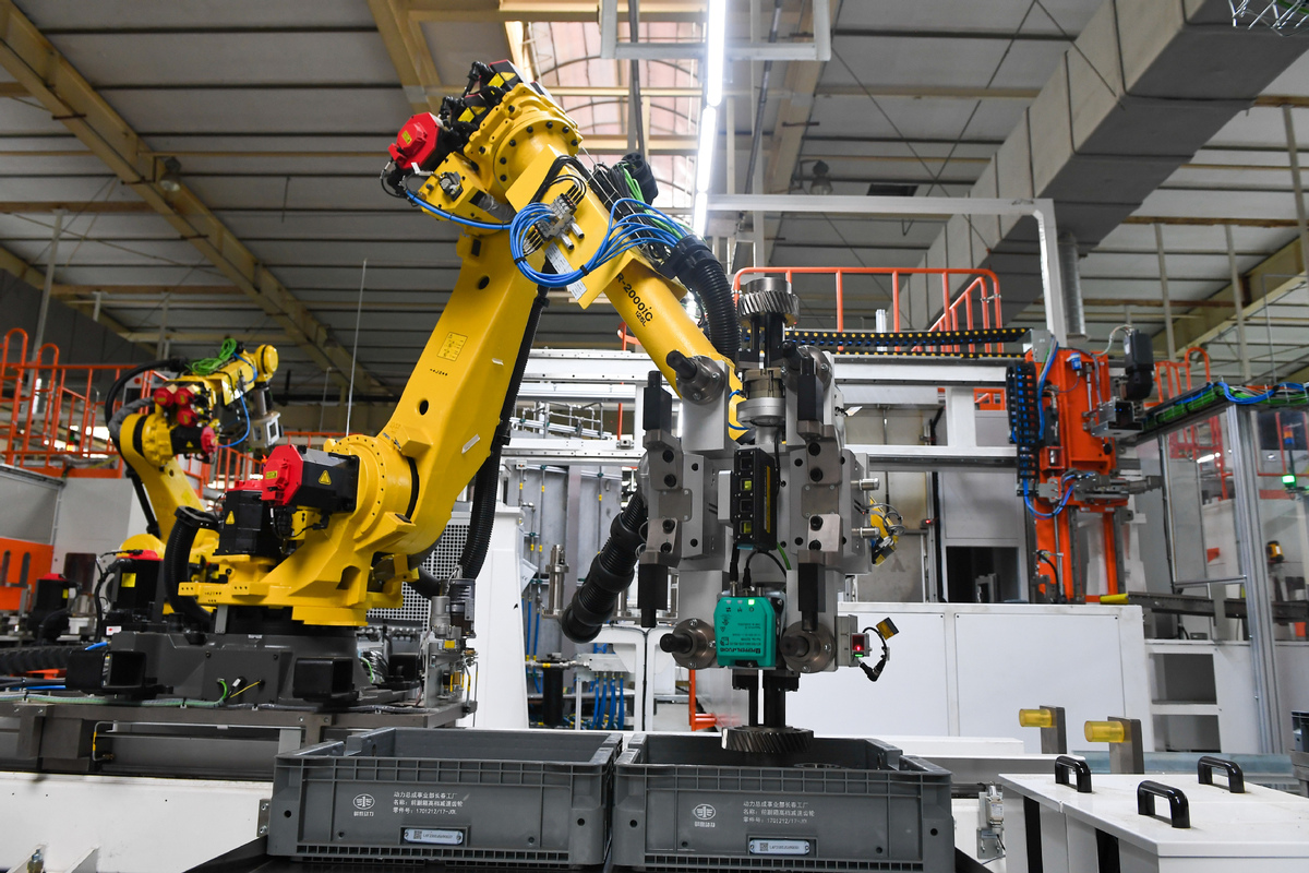 Robots automatically grab parts at the integrated AMT workshop of FAW Jiefang Automotive Co, a subsidiary of China FAW Group, in Changchun, Jilin province, on Aug 5, 2024. [Photo/Xinhua]