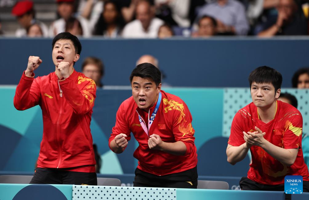 PARIS, Aug. 7 (Xinhua) -- China's table tennis men's and women's teams eased past their respective opponents to advance into the semifinals at the Paris Olympics here on Wednesday.