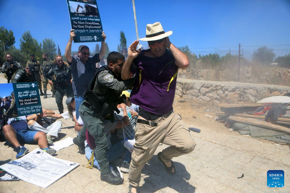 Israeli soldiers detain Palestinians and foreign activists during a demonstration against the Israeli confiscation of land in Beit Jala, near the West Bank city of Bethlehem, on Aug. 8, 2024. (Photo by Mamoun Wazwaz/Xinhua)