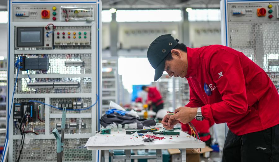 Contestants compete during a contest of electricians, part of a national vocational skills competition, in Guiyang, capital of southwest China's Guizhou Province, May 8, 2024. (Xinhua/Tao Liang)