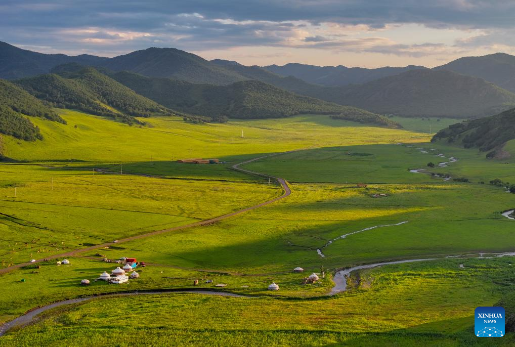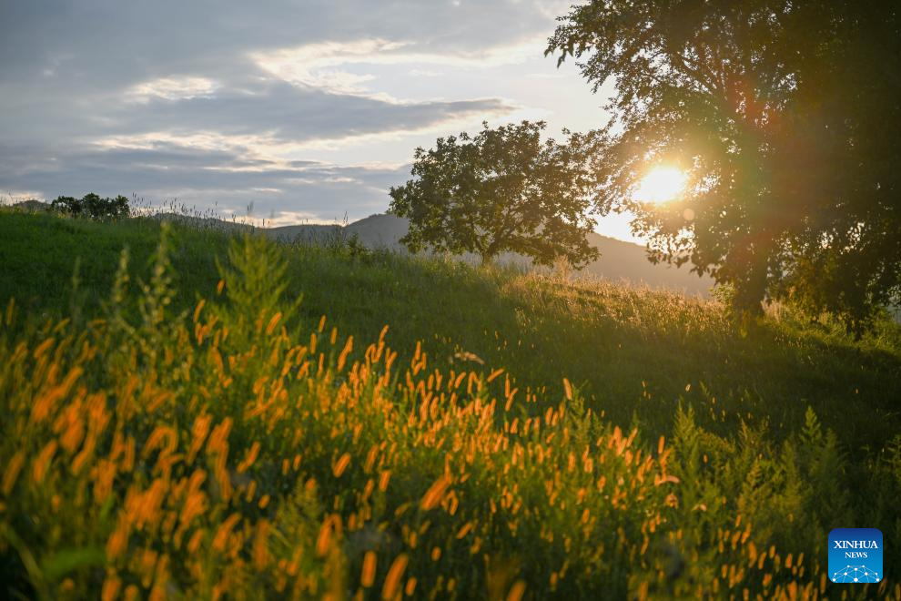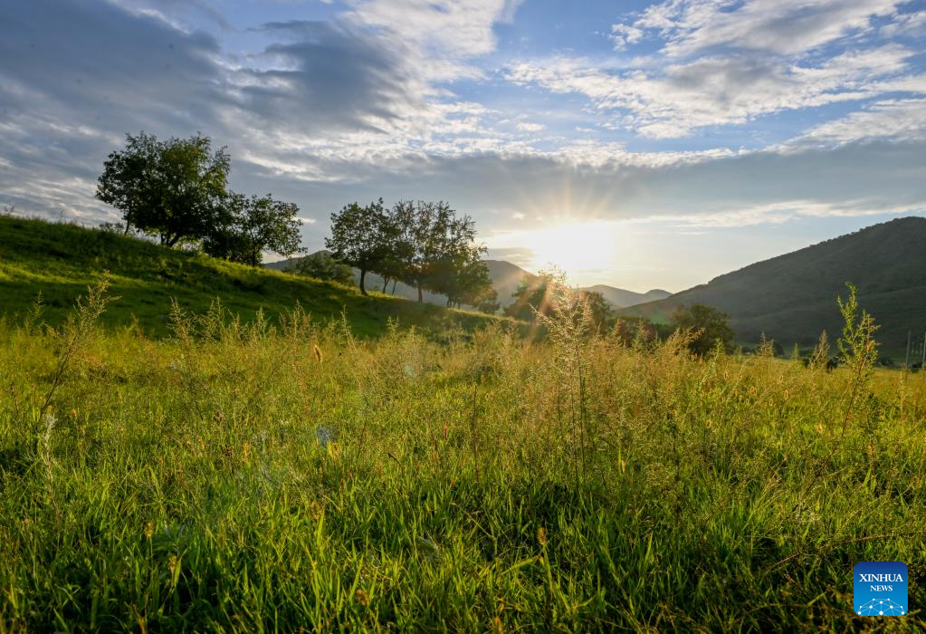 This photo taken on Aug. 8, 2024 shows the sunset scenery at the Wulanmaodu pasture in Horqin Right Wing Front Banner, Hinggan League, north China's Inner Mongolia Autonomous Region. (Xinhua/Lian Zhen)