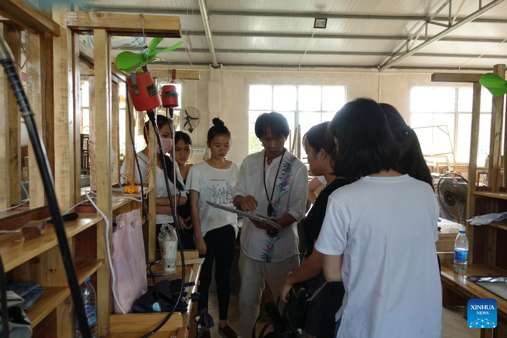 This undated file photo shows Wu Mingju (C) teaching coconut shell carving in class at Qiongtai Normal University in Haikou, south China's Hainan Province. Coconut shell carving, an art form that involves the creation of designs using carving tools on the hard shell of a coconut, was listed as one of the national intangible cultural heritages in 2008. Wu Mingju, an inheritor of coconut shell carving, has been committed to the inheritance and promotion of this ancient and intricate art for 33 years by exploring technical innovation, setting up coconut shell carving courses in schools and cultivating young artists. Thanks to his efforts, the art has received a new lease on life. (Xinhua)