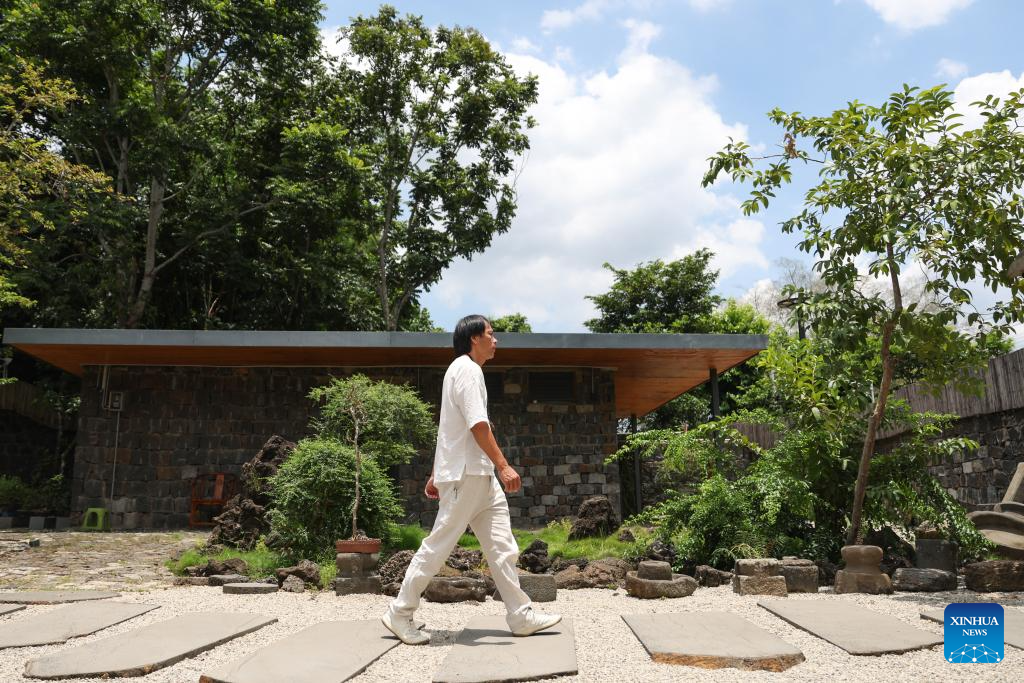 Wu Mingju walks in a yard at a workshop in Haikou, south China's Hainan Province, Aug. 9, 2024. Coconut shell carving, an art form that involves the creation of designs using carving tools on the hard shell of a coconut, was listed as one of the national intangible cultural heritages in 2008. Wu Mingju, an inheritor of coconut shell carving, has been committed to the inheritance and promotion of this ancient and intricate art for 33 years by exploring technical innovation, setting up coconut shell carving courses in schools and cultivating young artists. Thanks to his efforts, the art has received a new lease on life. (Xinhua/Zhang Liyun)